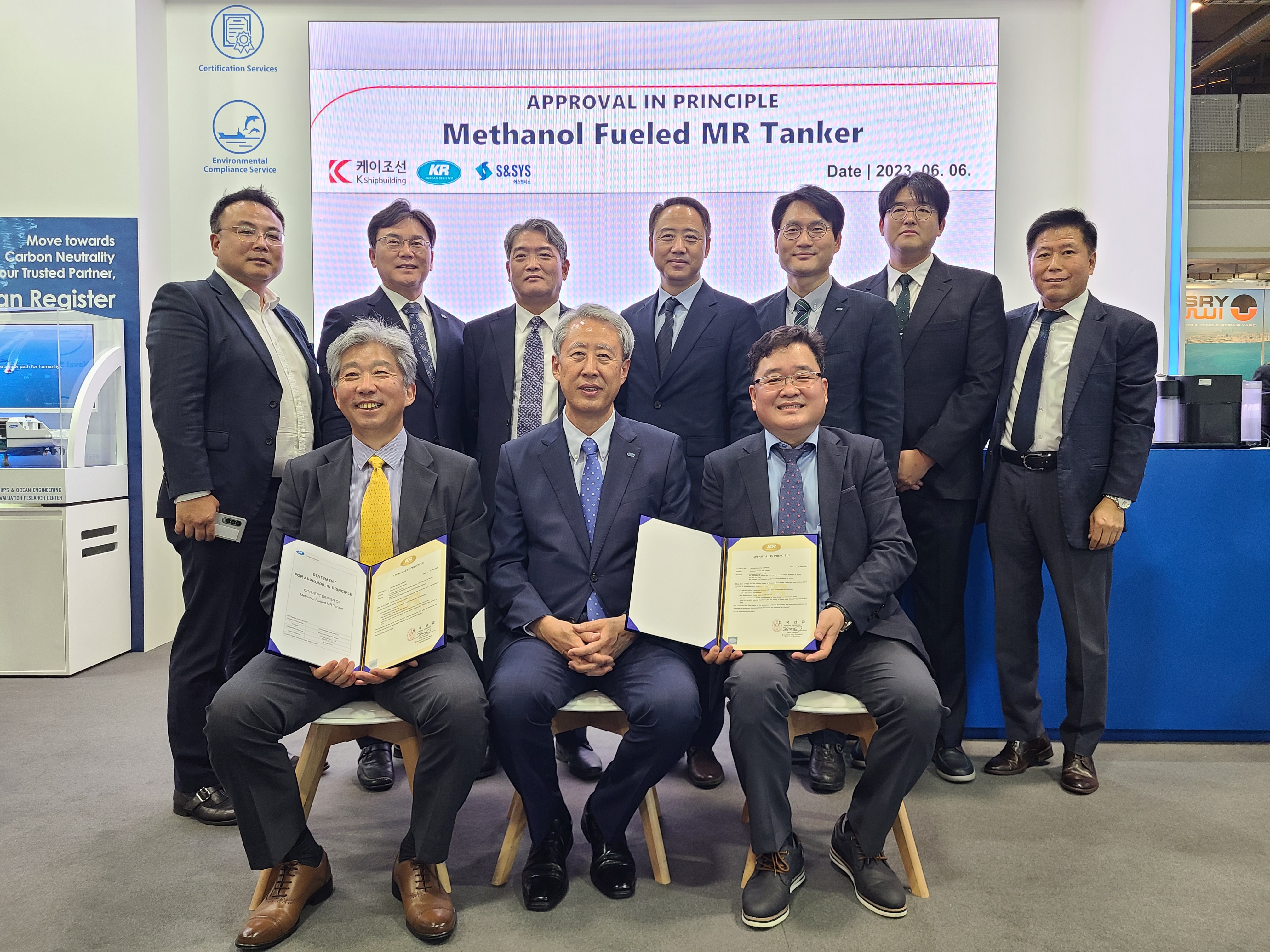 Korea Register(KR) announced Approval In Principle "Methanol Fueled MR Tanker" developed by K-Shipbuilding and S&SYS on 7th JUNE.